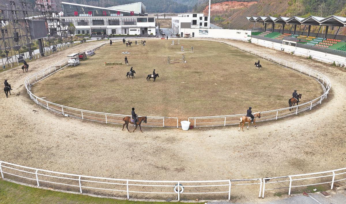 Ученици от класа по конен спорт тренират в конния град Танлун в Ихуанг, провинция Дзянси, на 23 декември. WAN XIANG/XINHUA