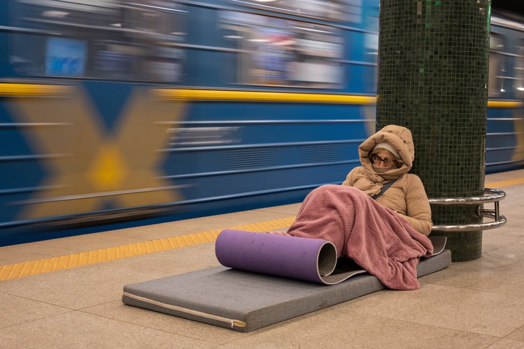 „Да изтощим хората, да тласнем нещата до някаква критична точка, така че да няма останала сила, да сломим съпротивата ни“, каза тя, като се прикриваше заедно с десетки други жители на Киев, навити в шапки и палта.