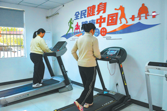 Жителите тренират на бягащи пътеки в обществена фитнес зала в град Tiantang, окръг Yuexi, Anqing, провинция Anhui, на 20 ноември. WU JUNQI/ЗА КИТАЙ ДАЙЛИ