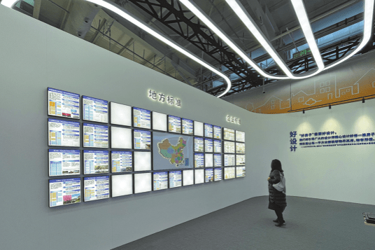 Щандът на Китайската академия за строителни изследвания се вижда по време на жилищно изложение в Пекин през ноември. КИТАЙ ДЕЙЛИ
