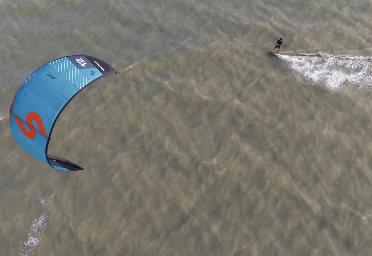 Зад него кристално сини води се простират по крайбрежието, докато десетки цветни хвърчила се извиват над небето. Ездачите се движат по вълните с вълнуващи скорости, теглени от постоянния крайбрежен вятър.