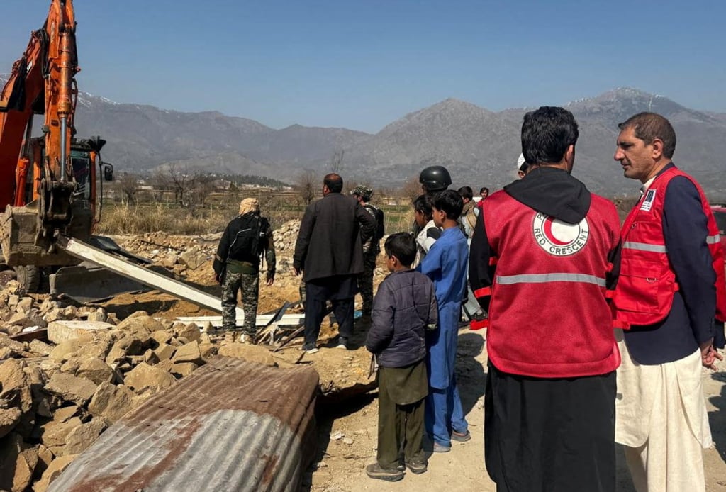 Спешни работници копаят развалините след бойна атака в Баджаур, Пакистан, във вторник. Снимка: Пакистански червен полумесец/Ройтерс