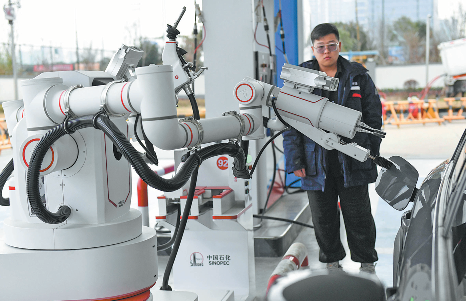 Робот за зареждане затваря капачката на резервоара за гориво на автомобил на бензиностанция в Чанша, провинция Хунан. YANG HUAFENG/КИТАЙСКА НОВИНАРСКА УСЛУГА